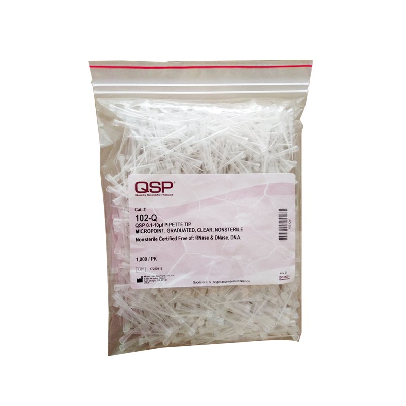 非滅菌,帶2ul刻度,無色透明,QSP吸頭適配各類品牌的移液器
