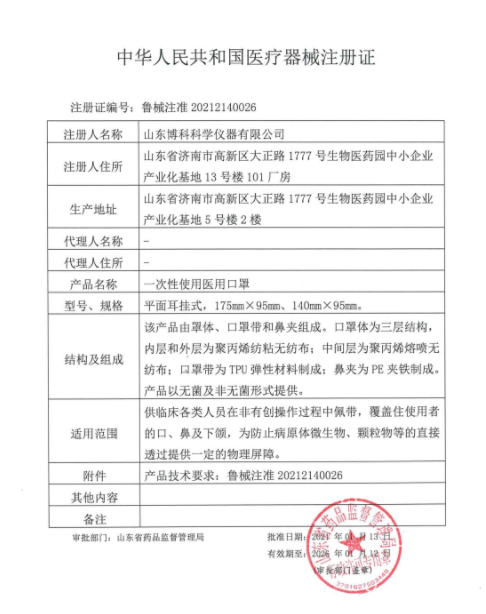 所屬類目:Ⅱ類 14-注輸、護理和防護器械 批準文號:魯械注準20202140233